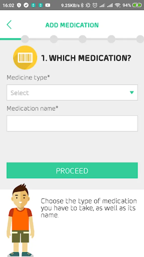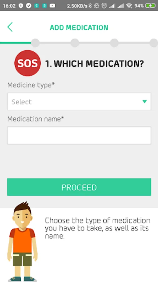 - Insert a medication, defining its type (inhalation, tablet or inhalation / nostril) and name;