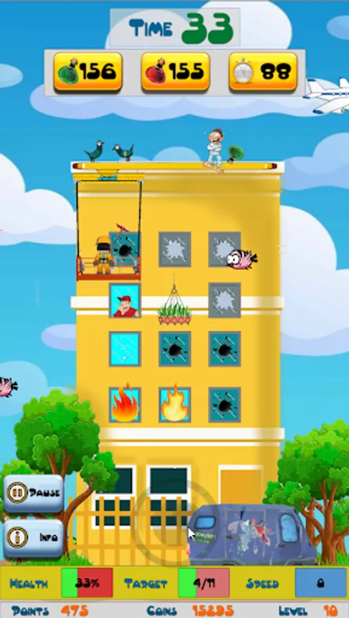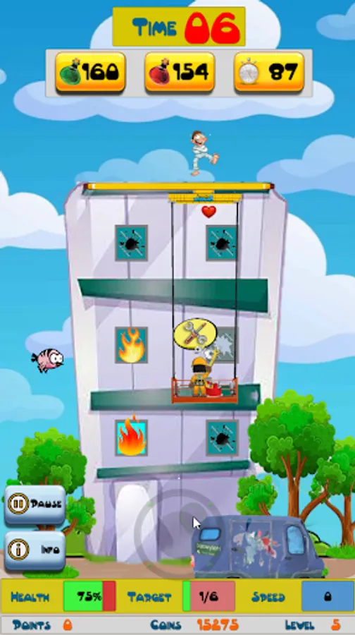 You will have to commit yourself to be able to clean all the windows in the shortest possible time, avoiding the objects that a fool will throw you from above and taking the most potions and coins to increase your speed and strength!