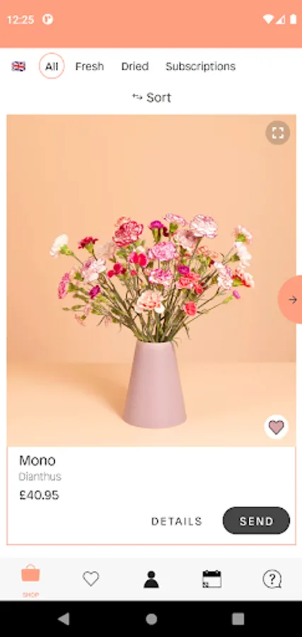 Add favourite flowers to your wish list or use the favourites section to order a product again.