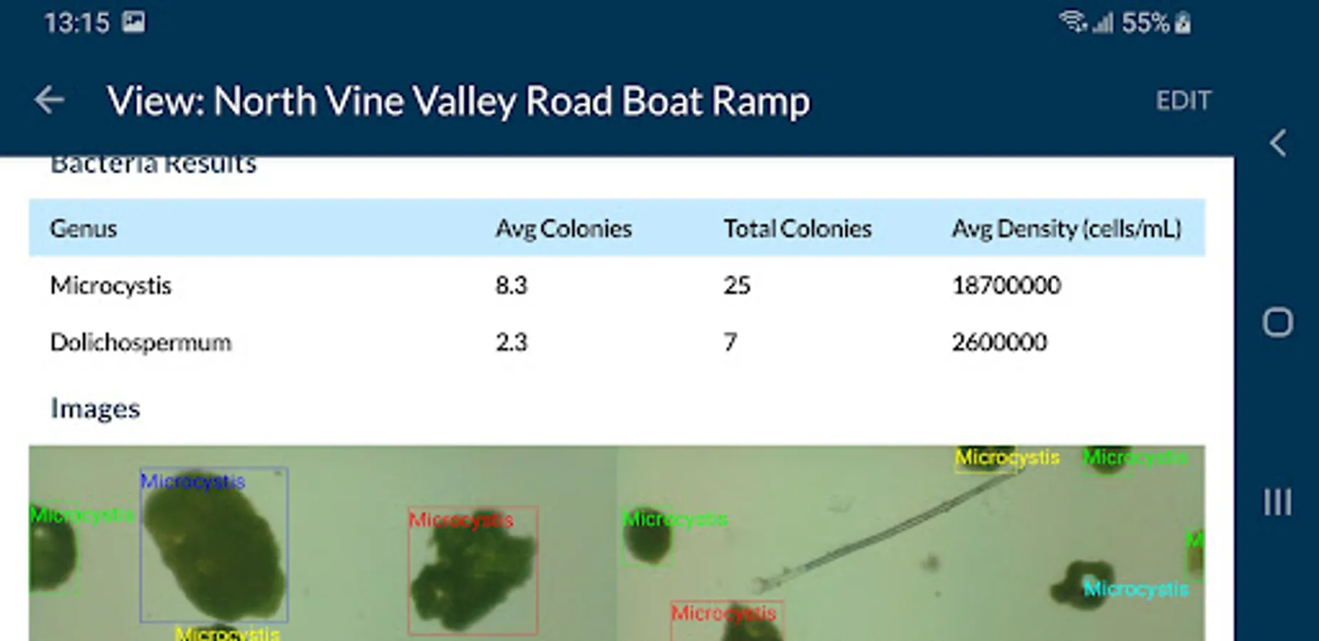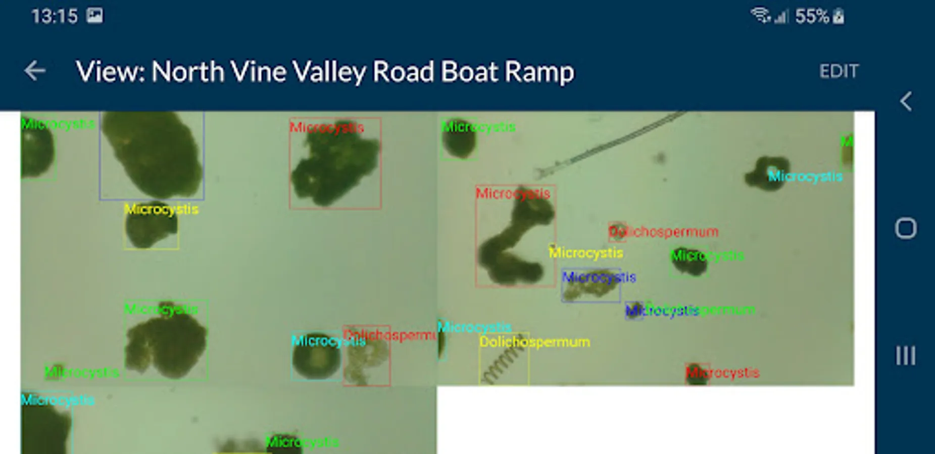 To use the BloomOptix® AI, collect a sample of water and plate a few drops onto a microscope slide. Then, image the sample using a 2mm ioLight microscope. Simply upload photos of suspected cyanobacteria via the app and provide field observations, and any other data you collect. The BloomOptix® AI will return cyanobacterial colony IDs and cell counts within seconds of upload. There is also no more need for chain-of-custody forms nor field data sheets, as all data uploaded via the app is can be geolocated, as well as automatically stored and archived for later use.