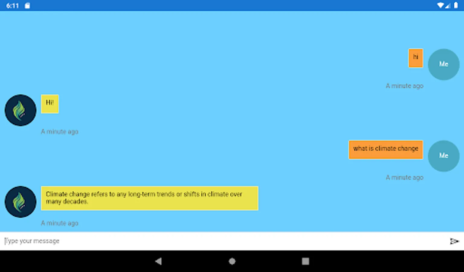 Mona: Climate Change Advocate is a bot that informs you about Climate Change. You can ask her a question, and she will answer back with the closest response.