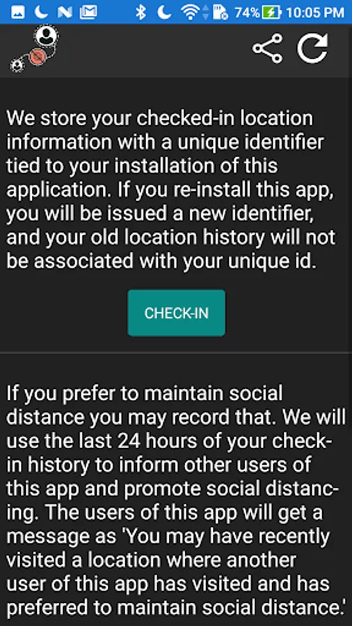 We use location services to promote social distancing. We allow you to check-in your location within the app. The checked-in location is stored anonymously on our servers. We use this location information to inform you through the app if you checked-in at a location where another user who has reported to maintain social distance has checked-in. We allow you to Self-Inform if you prefer to maintain social distance.