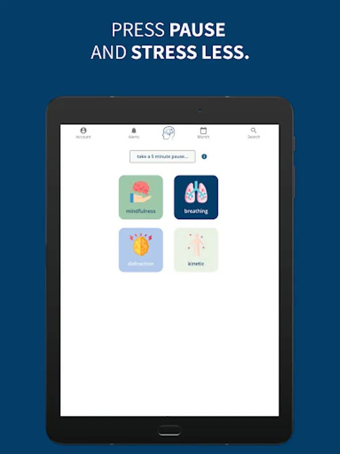 When feeling stressed or overwhelmed while at work, employees can access the pause button which gives them the opportunity to engage in four different stress-reducing exercises.