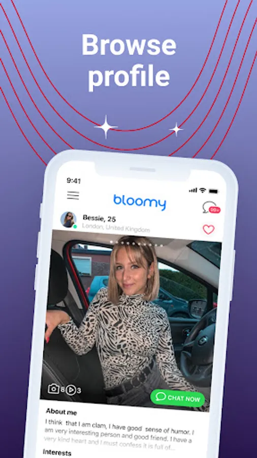 "Download Bloomy and enter a world of love and attention from thousands of beautiful women and single men. Bloomy is a messenger where you’ll find only the most attractive and caring singles looking for their soulmate.