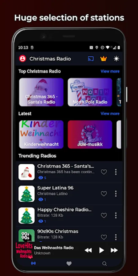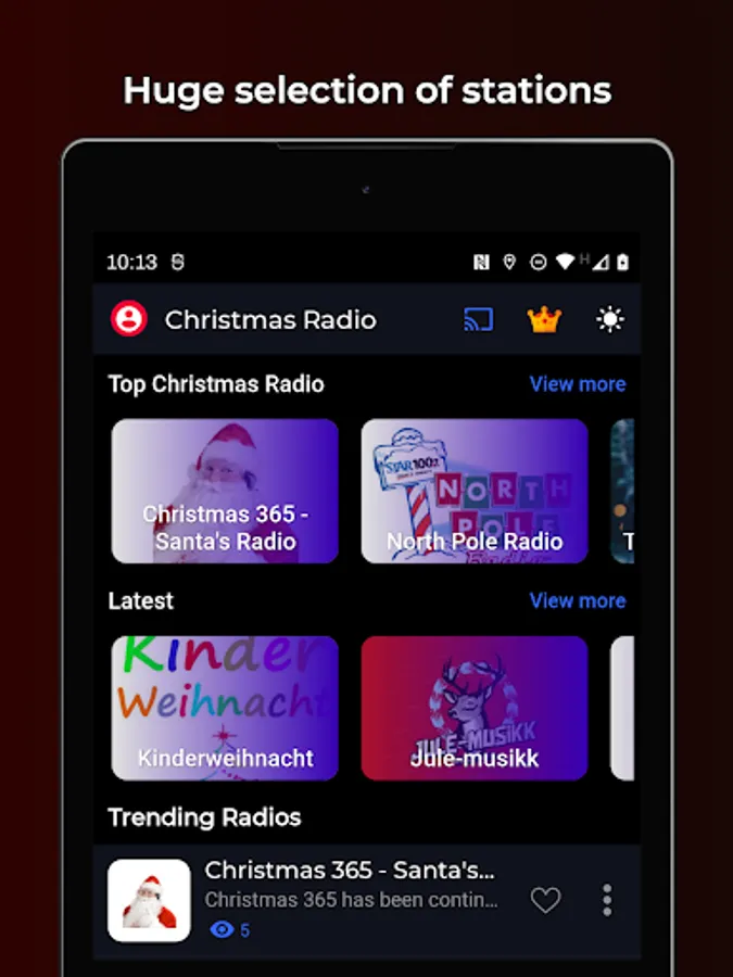 ๐ The app includes nearly 400 stations with Christmas music and carols.