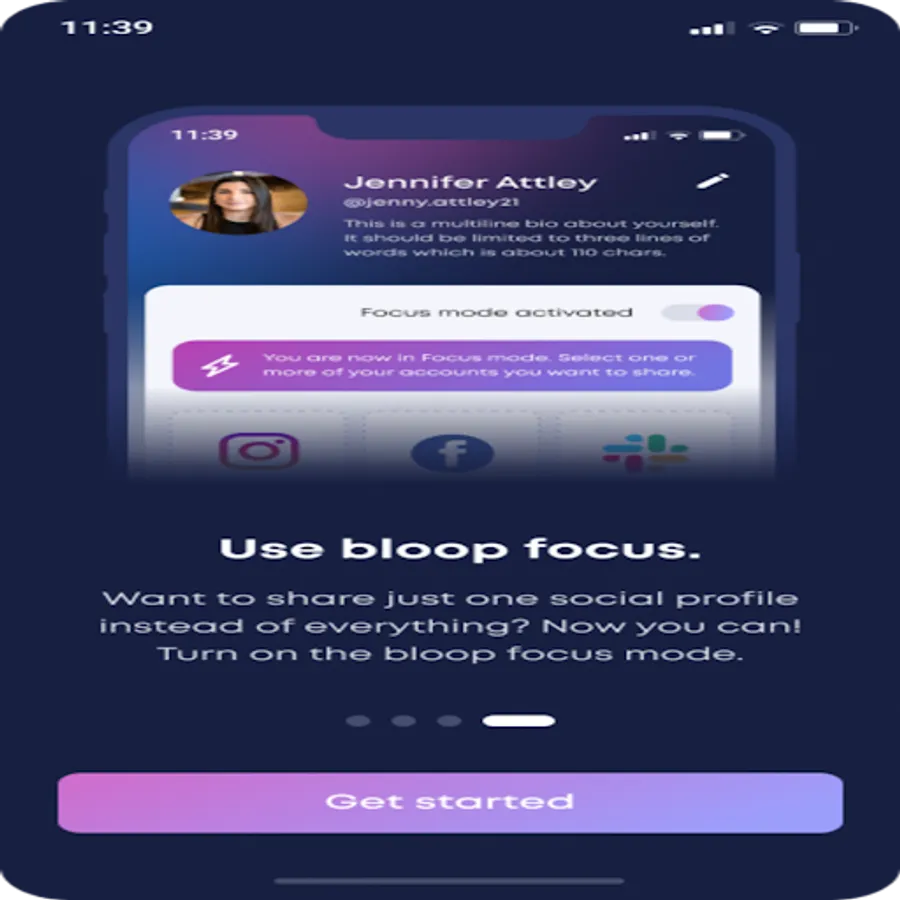 Bloop omogućuje dijeljenje kontakt podataka, društvenih medija, jednim dodirom koristeći Bloop tagove ili Bloop kartice. Drugim osobama nije potrebna aplikacija. Radi na svim pametnim telefonima.