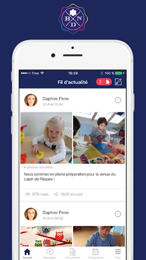 find various contents posted by childcare professionals: anecdotes, menus, appointments of the