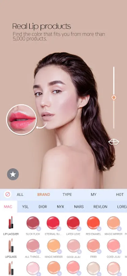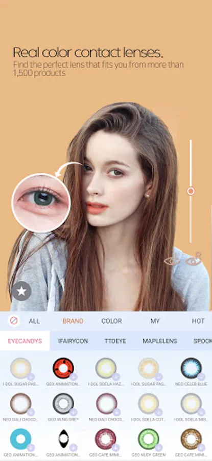 Experience color lenses and lip products sold in the market with our try-on camera after color and image search.