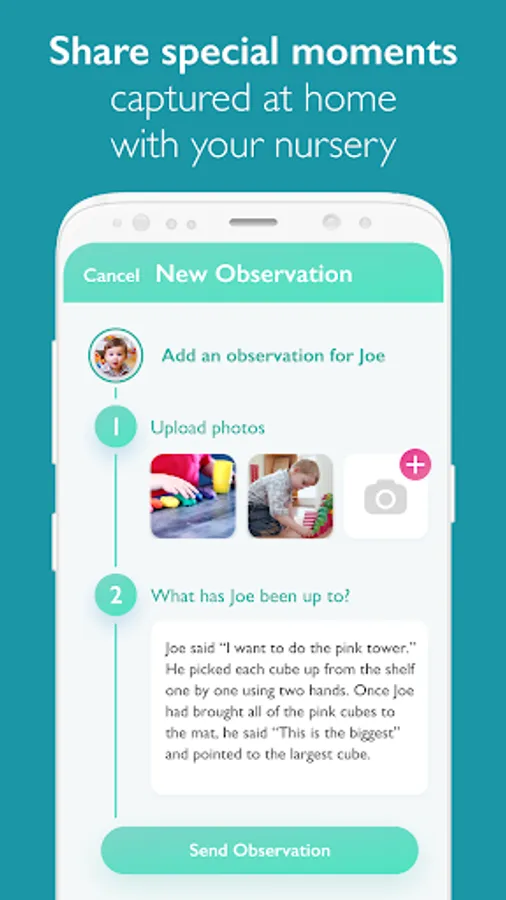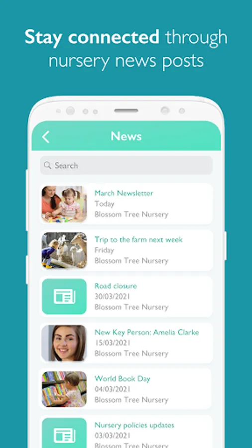 Blossom connects parents with their children and the nurseries which look after them. Engage in your child’s day with a real-time diary feed, displaying everything from sleep to activities, snacks to nappy changes. Share your child’s developmental moments from home directly with the nursery, creating stronger communication and supporting your child in their early years.