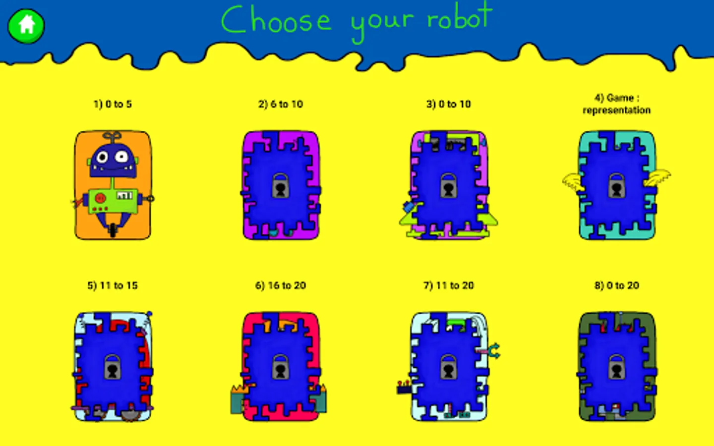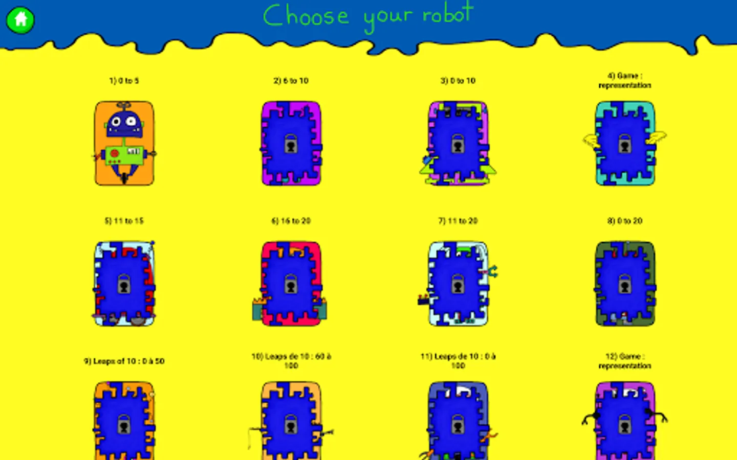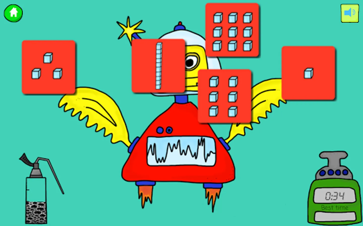 The player must listen to the number given orally for then locating the good answer among the bubbles proposed by the robots. After 20 successes, the player is carried out towards the discovery of a new robot whose complexity gradually increase. For learning, the goal is to pile up the most robots possible and to improve its own time if it plays again a robot later on unlocked!