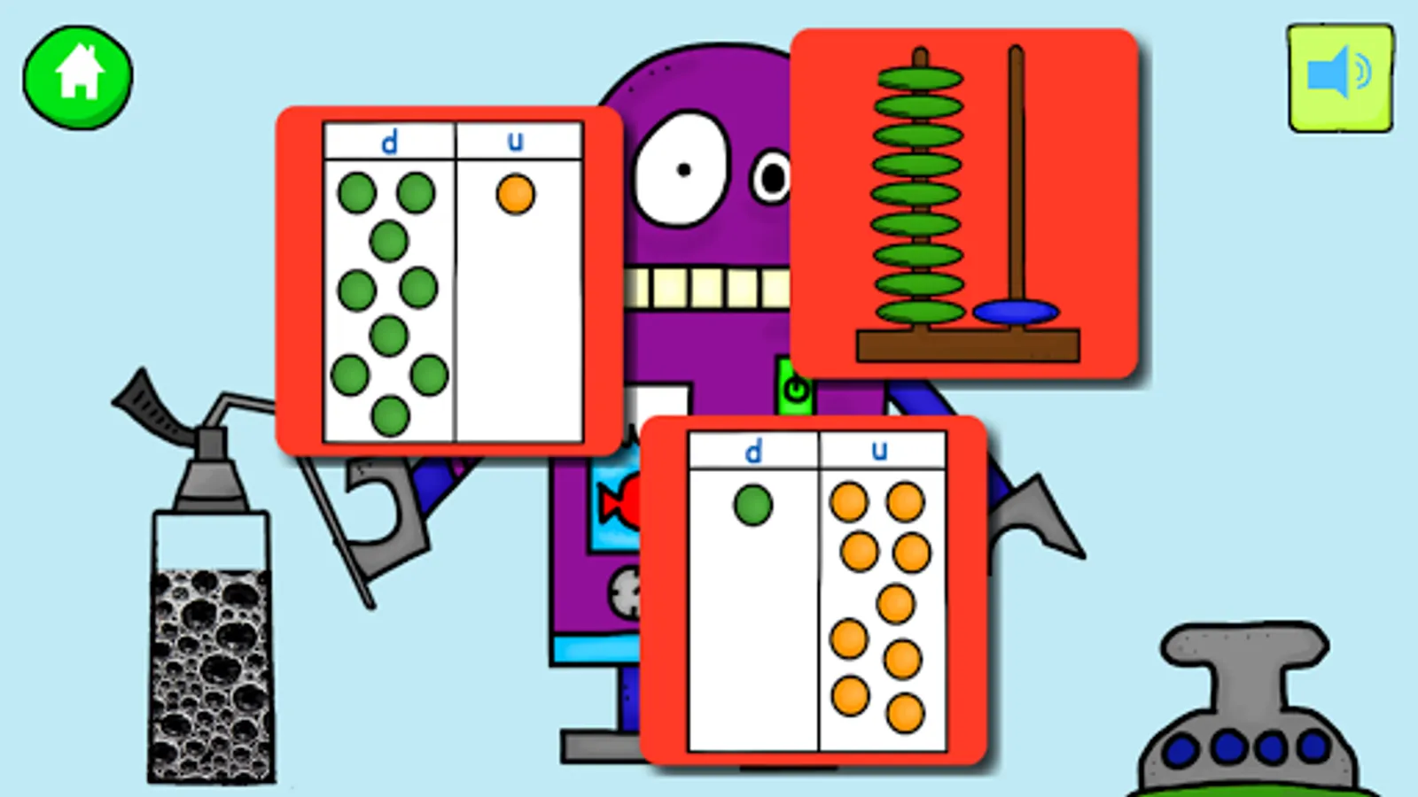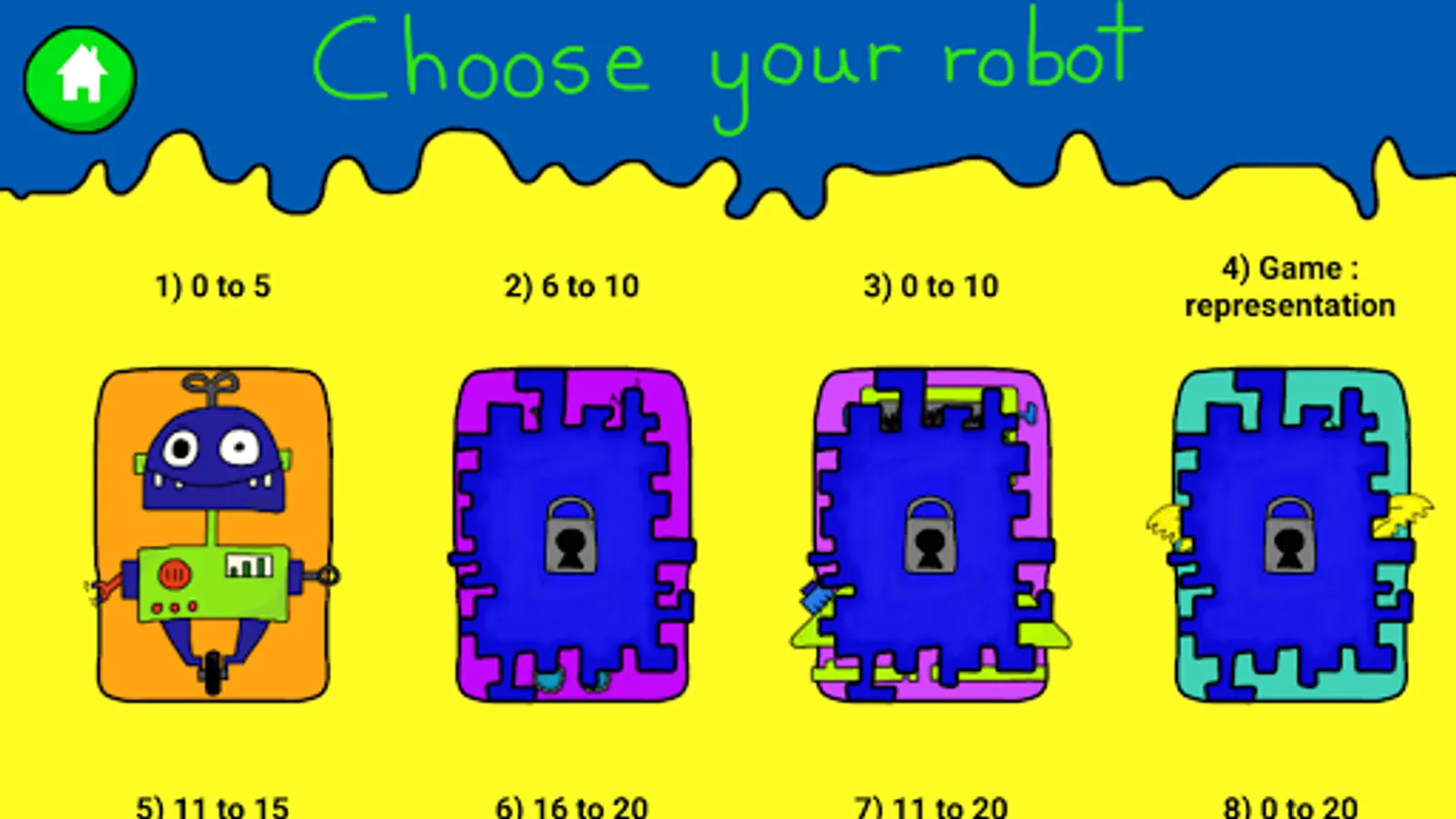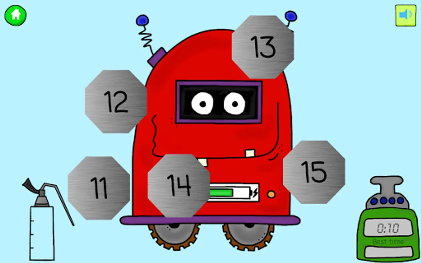 The player must listen to the number given orally for then locating the good answer among the bubbles proposed by the robots. After 20 successes, the player is carried out towards the discovery of a new robot whose complexity gradually increase. For learning, the goal is to pile up the most robots possible and to improve its own time if it plays again a robot later on unlocked!