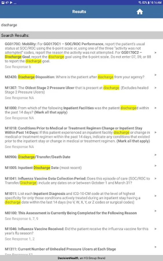 HH OASIS Mobile allows you to access OASIS guidance anywhere, anytime – even while visiting patients in remote areas with unreliable, or even nonexistent, WiFi. You can quickly navigate to instruction for any M-item with a few simple touches/swipes. No need to contact the clinical supervisor back in the office to look up the answer to a nuanced patient situation. No more thumbing through hundreds of pages of official guidance to find the answer yourself if that supervisor isn’t available.