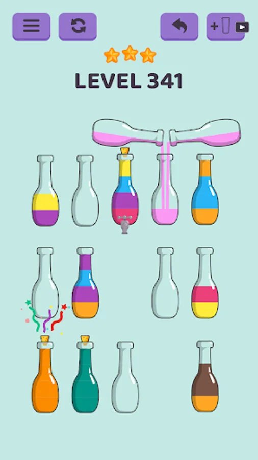 - Separate the colors into the right bottles and complete the level
