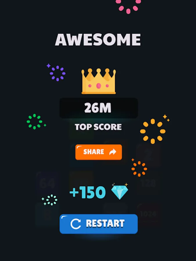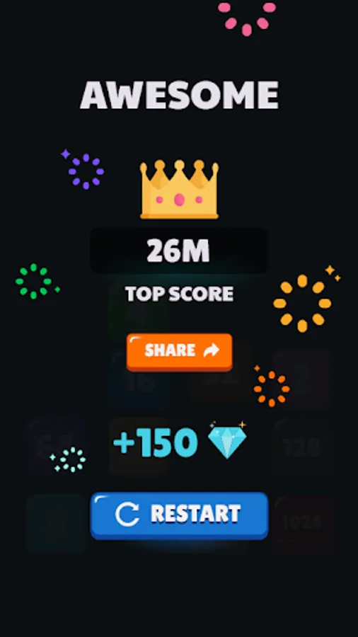 • Try to merge to 2048 and bigger numbers.
