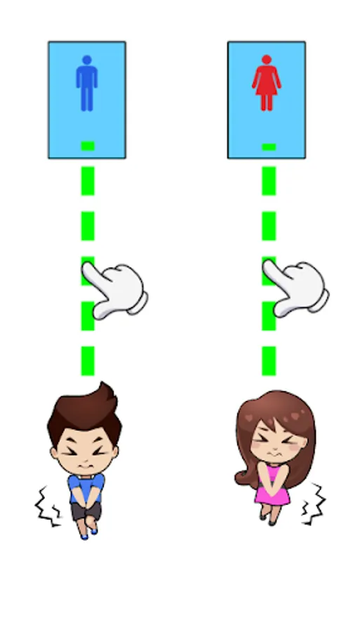 🚽🏃♂️🏃♀️ In Toilet Rush: Draw to Pee, the objective is to guide men and women to their respective bathrooms as quickly as possible. The game is played by drawing lines between the characters and the bathrooms. The catch is that you must avoid collisions between the men and women, as one collision will end the level and you will lose. With each level, the speed and number of characters increases, making it more challenging.
