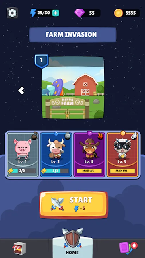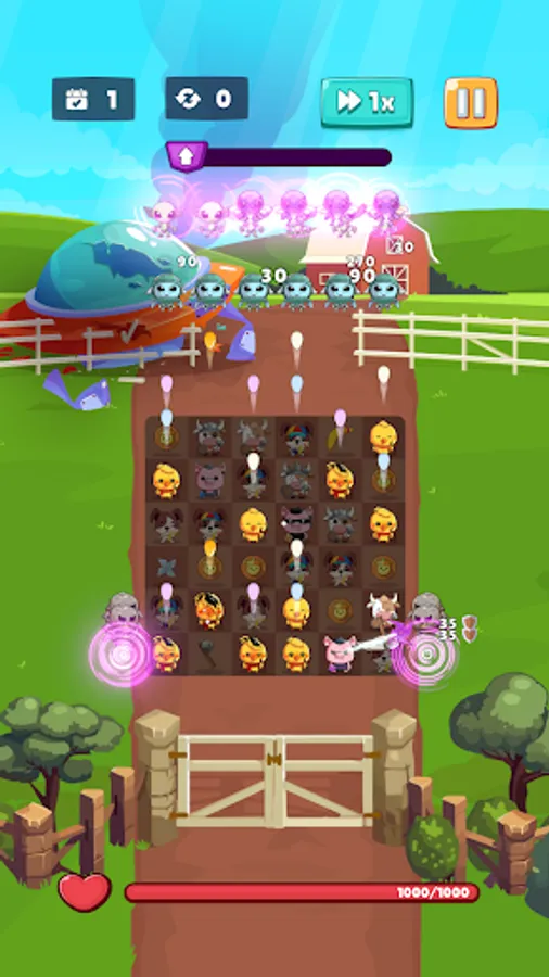 In Merge Farm Defense, your mission is to merge three of the same animals to evolve them for battle. Each evolvement makes them stronger and tougher - making it even more satisfying to rain down your egg-cellent fighting skills on those pesky aliens!