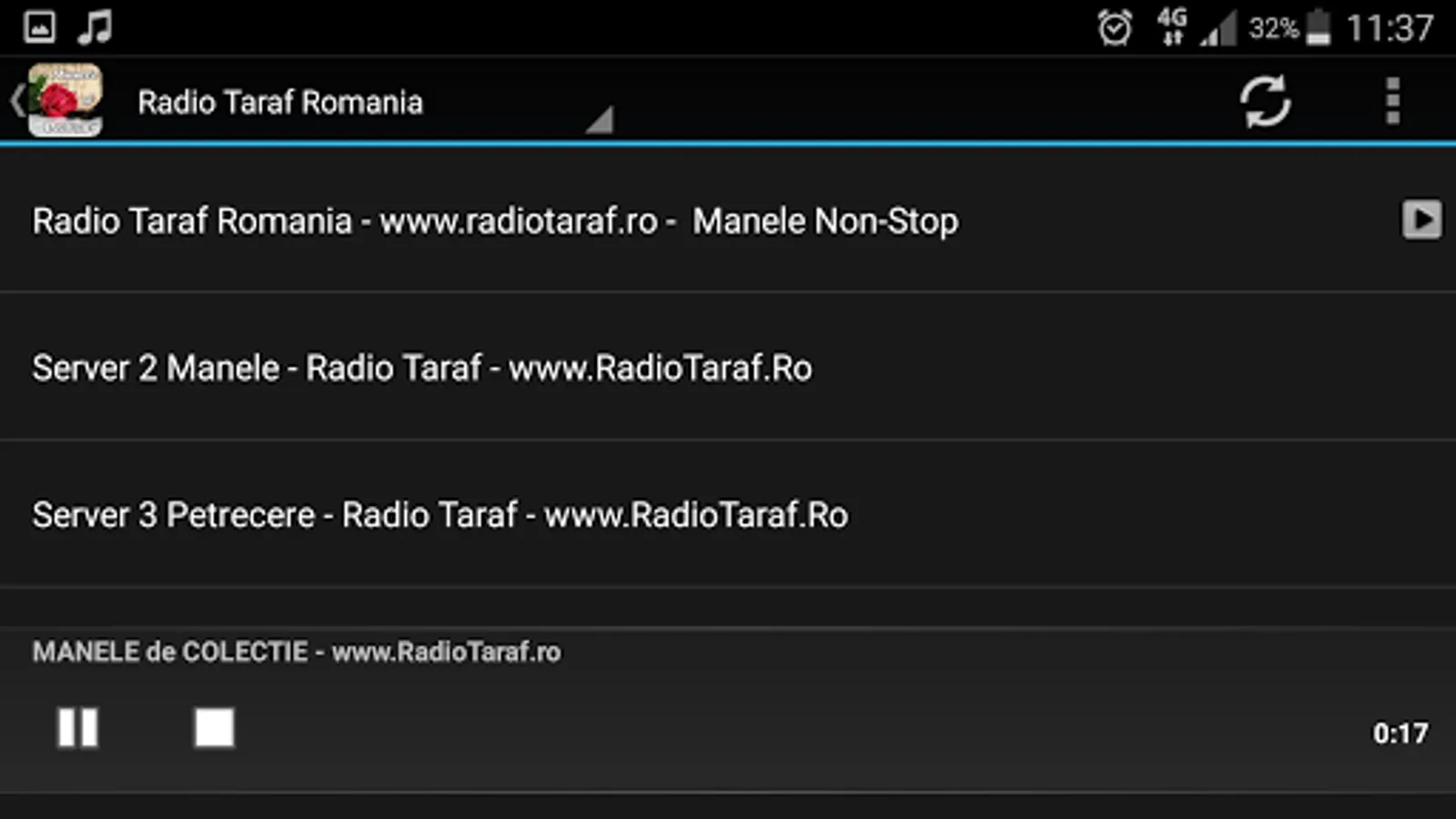 Among the stations in the application we can list: Radio Manele Traditional, Inferno Manele, Hit FM, Taraf Romania and others that we leave you to discover.