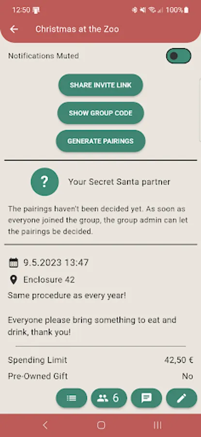 - create a group with all the necessary information: place and date of the meeting, the maximum value of the gift and if you want to only exchange second hand gifts