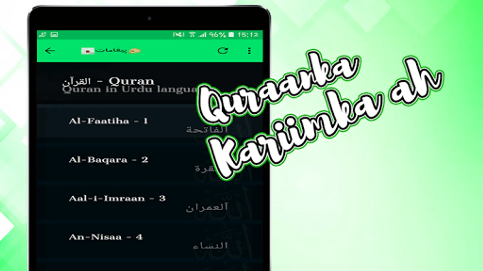 Quraan, Qur'aan, Quraanka Kariimka (carabi: ﺍﻟﻘﺮﺁﻥ; ingiriis: Koran) waa kitaabka Alle ﺍﻟﻠﻪ (s.w.t) ku soo dejiyay Nebi peace be upon him.svg (n.n.k.h), kaas oo ku qoran luuqada carabiga.