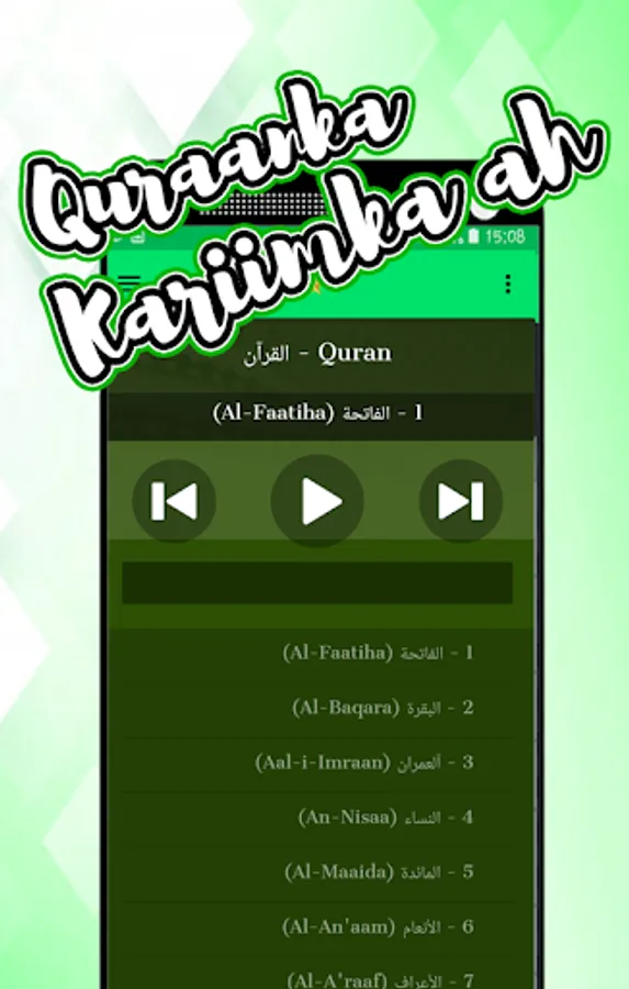 Intaasi waxaa dheer, Quraanka oo lagu akhrinayo luuqada carabiga ayaa waxa la akhriyaa wakhtiga la tukanayo salaadaha. Qofka xafida 114th Suuradood ee Quraanka waxaa loo yaqaanaa Xaafid. Jiijiidida iyo qurxinta codka marka la akhrinayo Quraanka waxaa loo yaqaanaa towjiid. If kastaba ha ahaatee, bisha Ramadaan dadka muslimiinta there waxay dhamaystiraan akhrinta dhamaan Quraanka ayagoo ku tukanaya salaada tarawiixda.