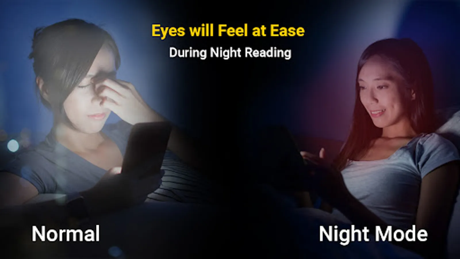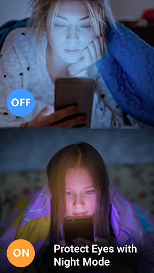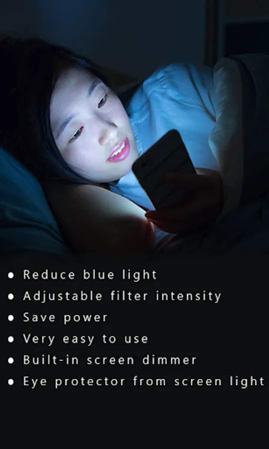 Eye Care Light: Blue Light Filter & Night Screen designed for easy mobile usage at night time. Care for your eyes at night time while using mobile phone & filter blue light of display of your phone for easy usage of mobile. Yellow filter app will remove blue light from your display & make your mobile usage easy. Remove blue light from your mobile display with Eye Care Light: Blue Light Filter & Night Screen and care for your eyes. Protect your eyes with eye protector, blue light filter app and have easy mobile usage. Eye Care Light: Blue Light Filter & Night Screen app is useful for mobile phone usage at night time. Using phone at night time with normal display may cause irregulating in sleep. By removing blue light from your mobile screen, you can improve sleep. Study mode will let you read easily without harming your eye sight. Simple & efficient eye protector can protect your eyes from strain. Warm light mode is also available with filtering blue light and protection of eyes. Block bule light in strain free mode and use phone at night, with out strain.
