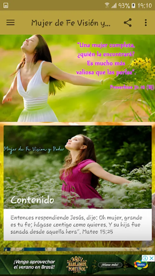 On this occasion we bring an application dedicated to women of "Faith" has full belief in what is not seen, and through this to have the strength to face the diversities that life presents you, as often as not we felt like that suffocate us and we need prompt help from God, but sometimes the person does not feel the confidence to go to God or do not know how to do it, just for those moments bring this useful tool, which will be your guide woman of faith, woman of hope ...