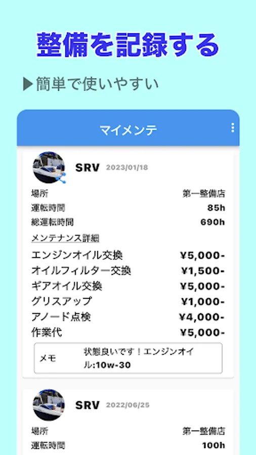 You can record regular maintenance. Because it is saved in the cloud, it also supports replacement or loss of smartphones.