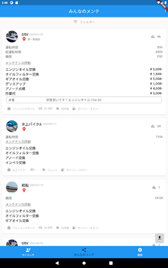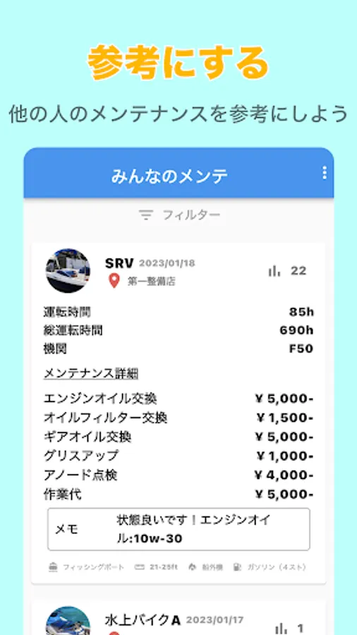 *The maintenance period recommended by the manufacturer differs depending on the hull and engine. For details, please check the individual product information.