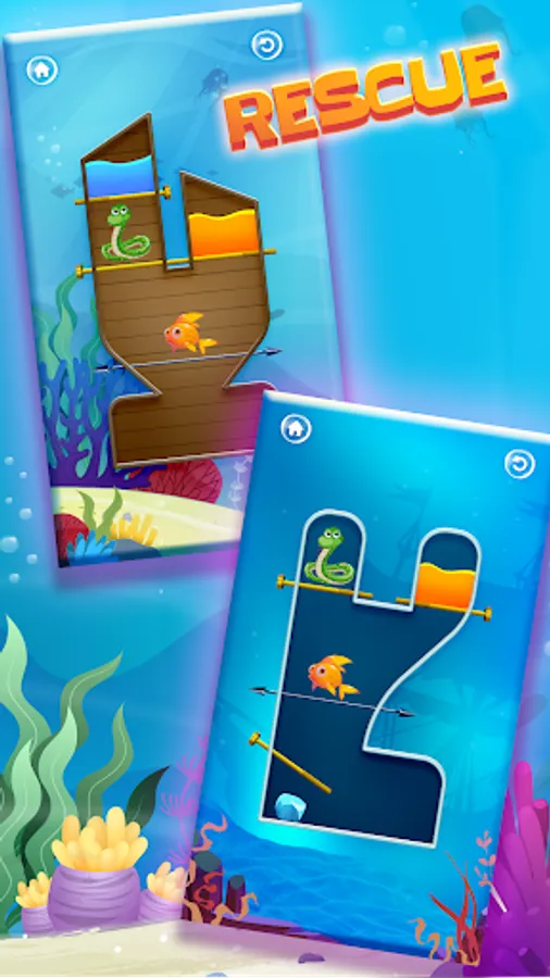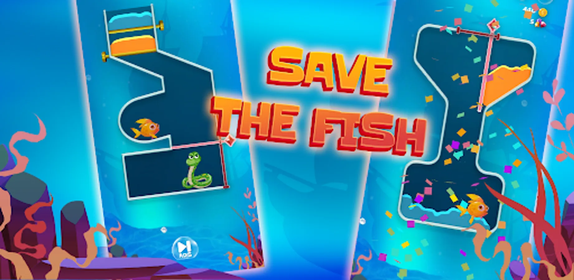 Fish Pin Challenge is a relaxing pull-pin-puzzle game. It is a free brain teaser game where you must figure out which pin to pull and in what order to pull the pin to save the fish from various obstacles like rocks, bombs, dynamites, poisonous gase.