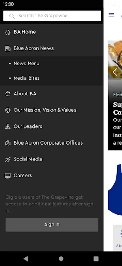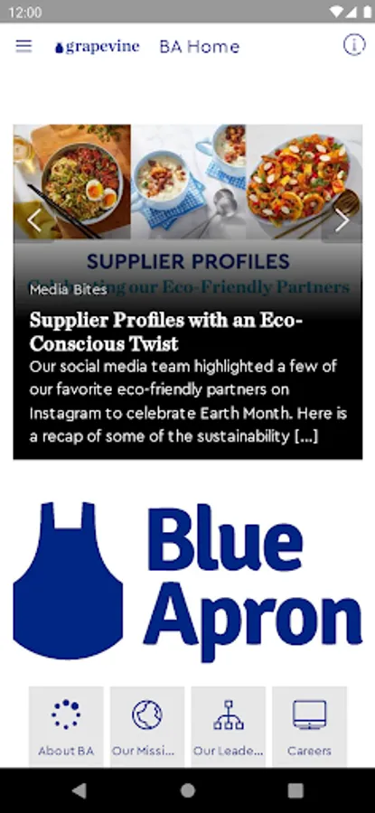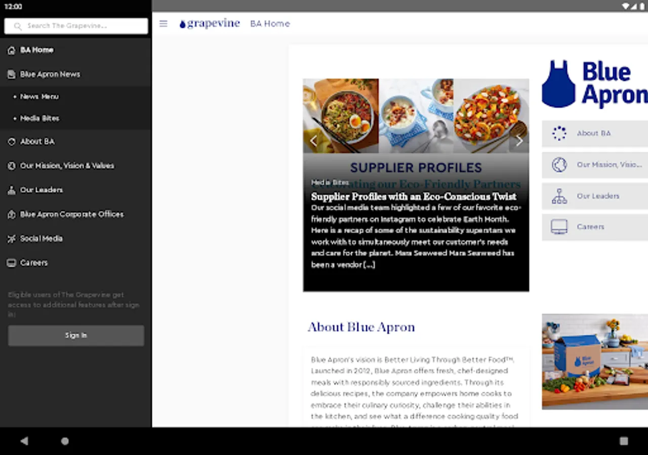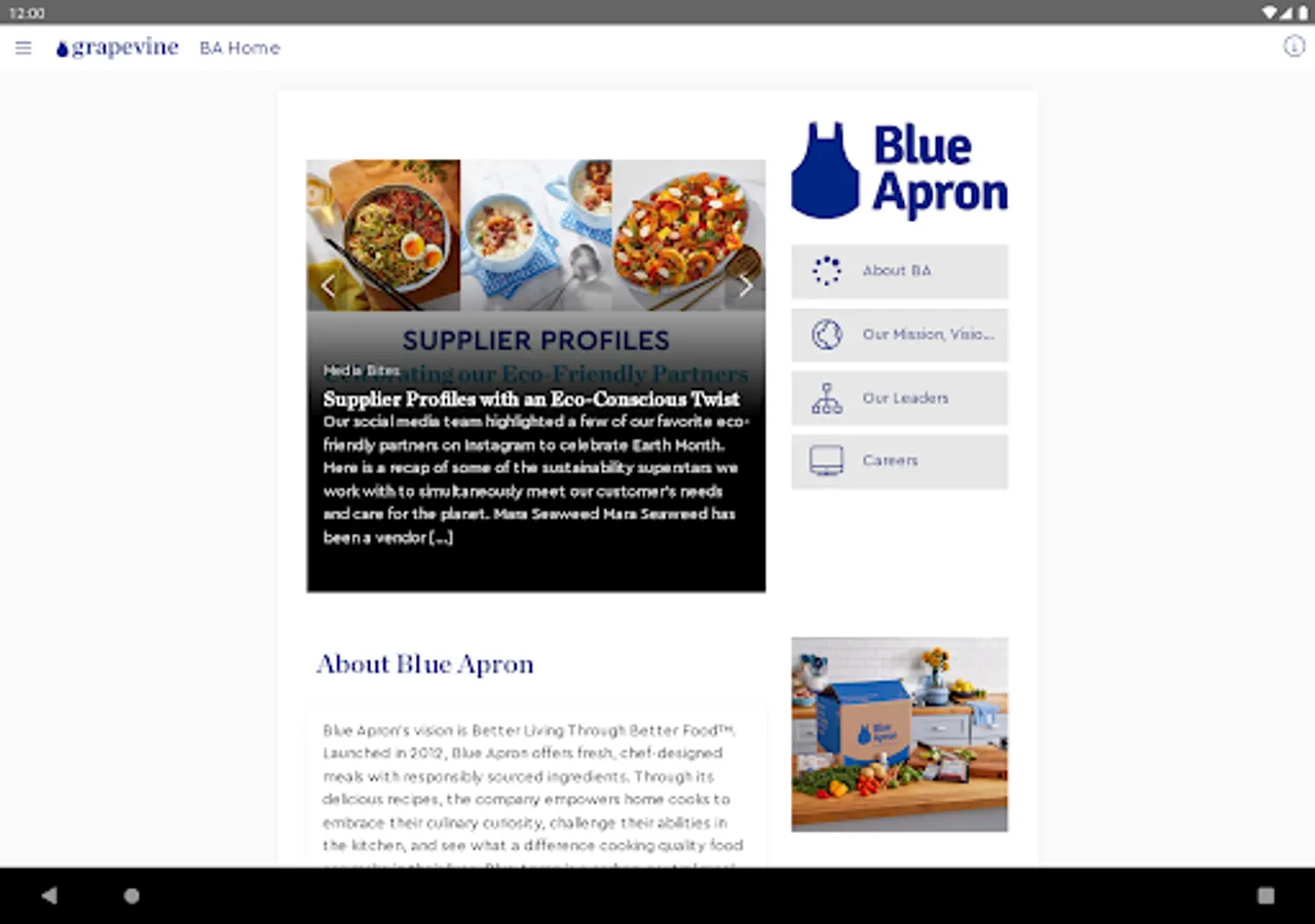 The Grapevine is an app designed to allow all interested parties the opportunity to learn more about Blue Apron, access helpful resources, and join us as we spark discovery, connection, and joy through cooking.