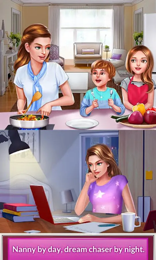 Play as the main character in Love Story with Twins as you try to balance work, life and romance! You’ll have to manage working as a part-time nanny for two adorable little babies, help your fun cousin Andrea plan for her wedding and try to pursue your dream job as an environmental journalist.