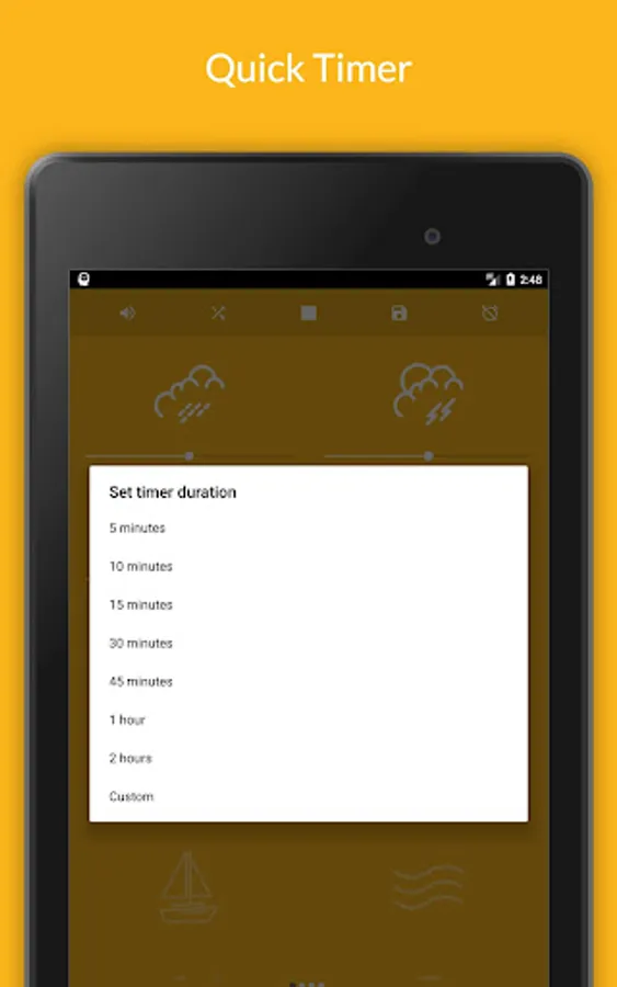 Easy to select and mix sounds like Rain, Thunderstorm, Wind, Forest with Birds, Water Steam, Seaside, Fire place, Summer Night... You can also adjust the volume of certain sound