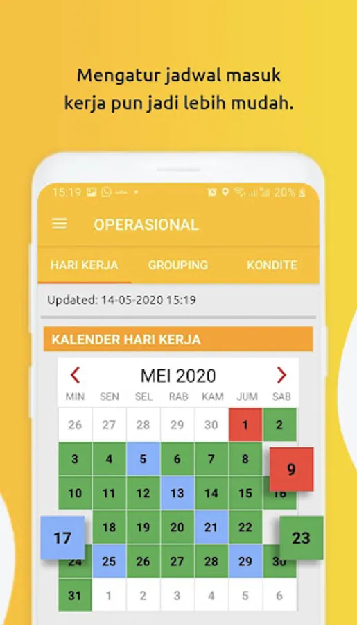 • Pantau informasi hari kerja langsung dari HP