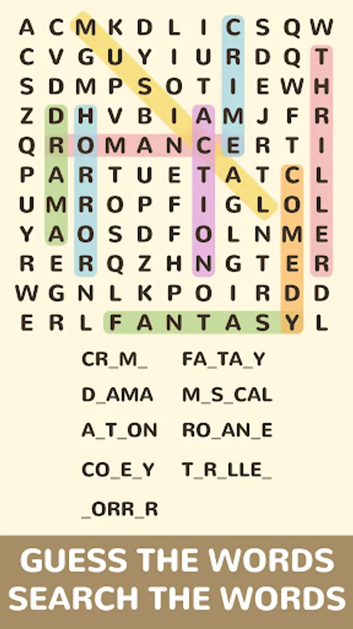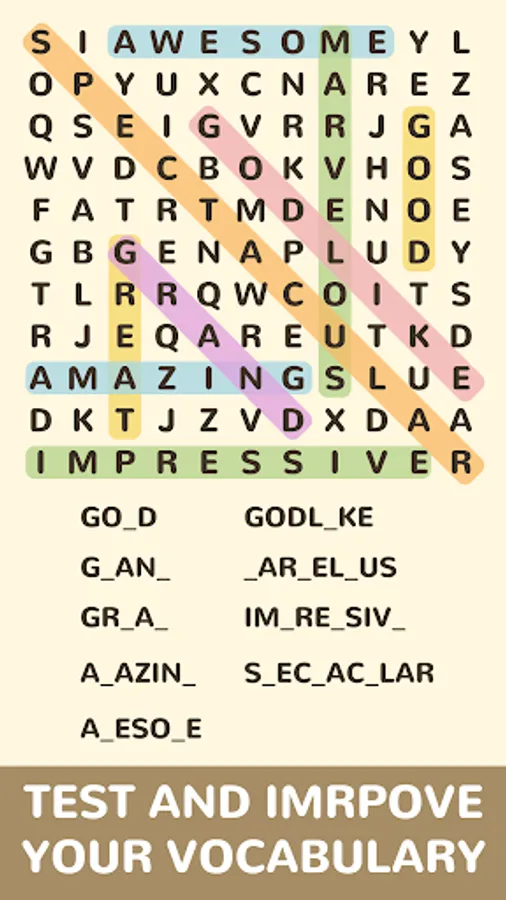 No registration, no complicated rules. Just guess and search the words, and have fun!