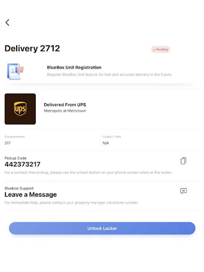 BlueBox is a smart parcel locker designed to simplify the parcel reception experience. As residents of a building containing BlueBox, your parcel will always be secure and safe from theft while giving you access to pick up your parcel 24/7. Our blueBox resident app offers features such as: