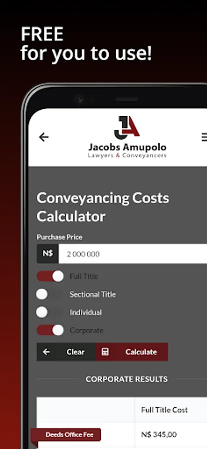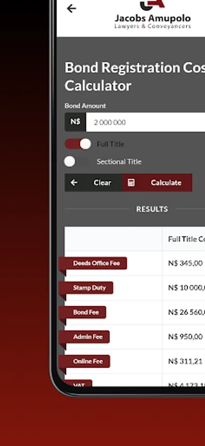 The definitive bond & conveyancing calculator for the Namibian property, real estate and estate agents market.