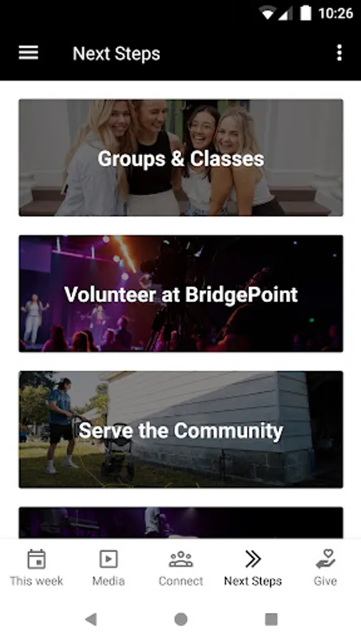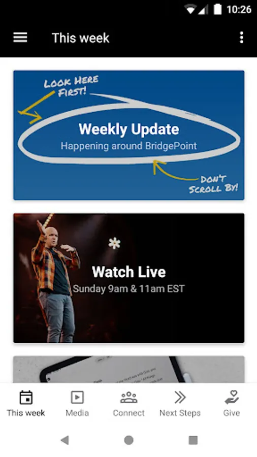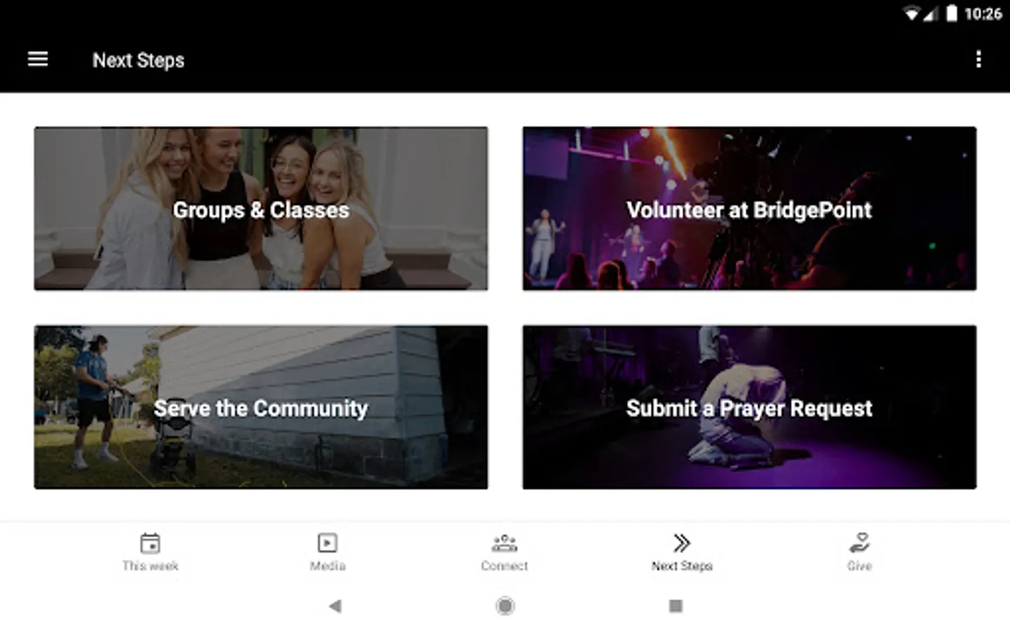 Use the app on Sundays during services to fill out online Connect Cards, submit prayer requests, give online, take notes on the message, and much more.
