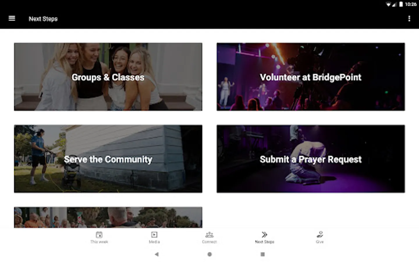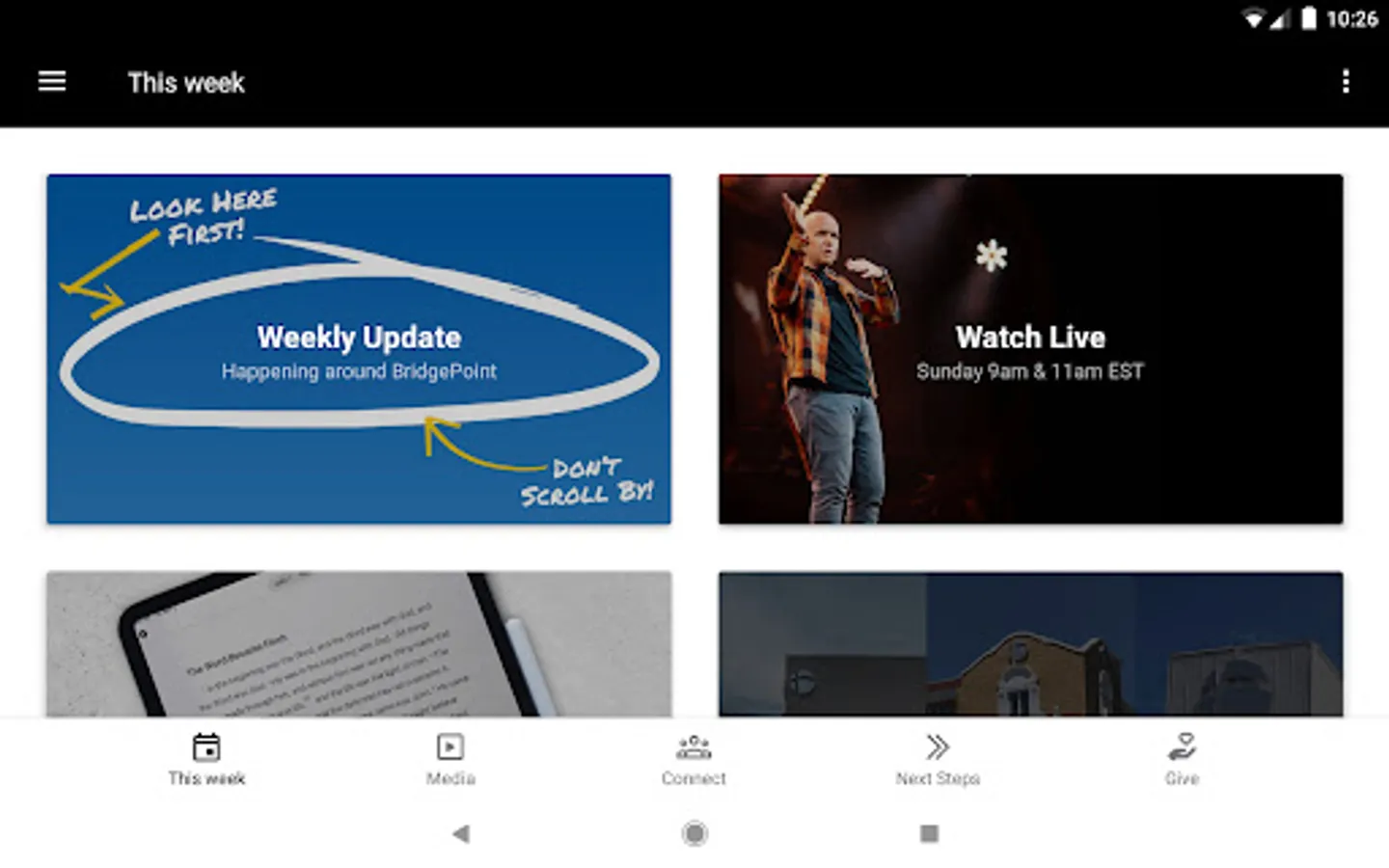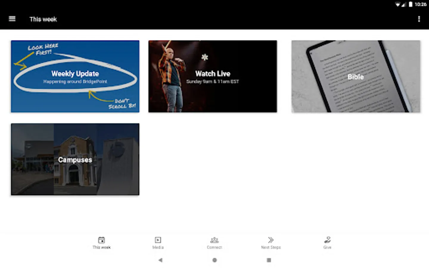BridgePoint's app gives you direct access to BridgePoint Church's most valued resources. You can watch live and archived messages, read articles from our staff, stay up to date on what's going on around here, and find out the latest way to connect in community.