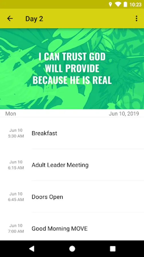 • On-stage information – such as speakers and worship bands – for your week of MOVE.