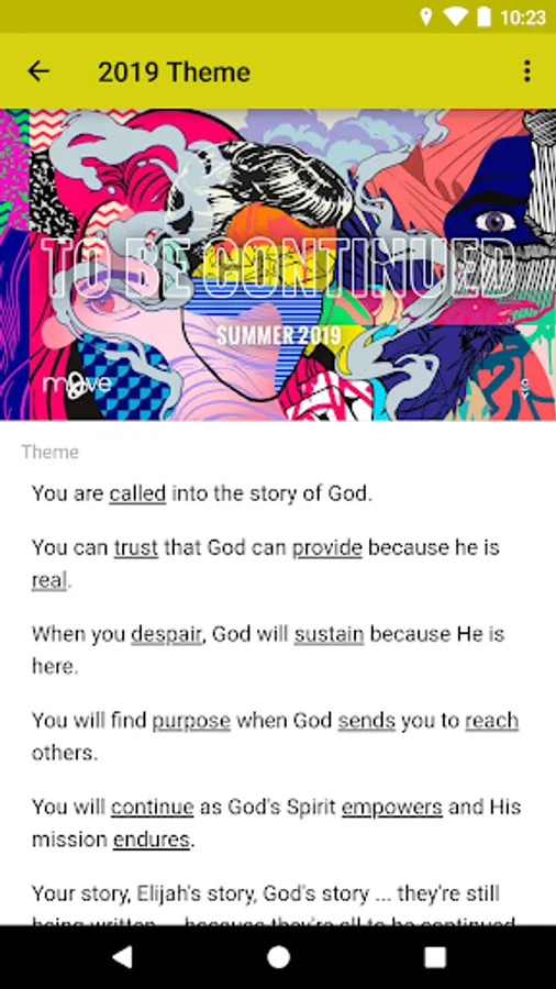 • Teaching Notes. If you’re sitting in a main session and hear something you want to touch on later, or if you’re in a small group time and a conversation begins that you know you’ll want to revisit later – just use your CIY MOVE app to create notes and reminders for use at a later time.