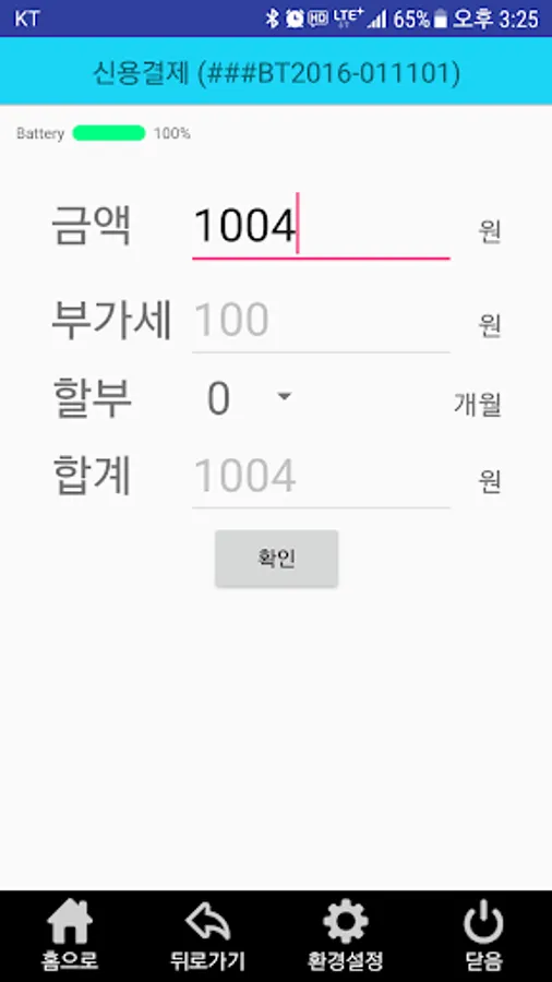 5. Battery Level Indicator: battery power remaining after the reader Bluetooth connection is displayed at the payment window.
