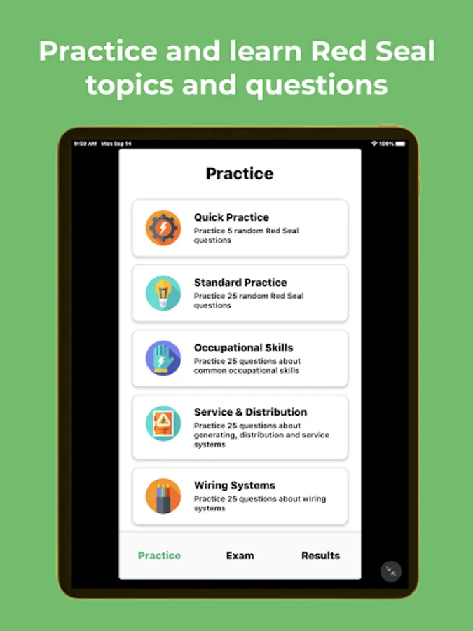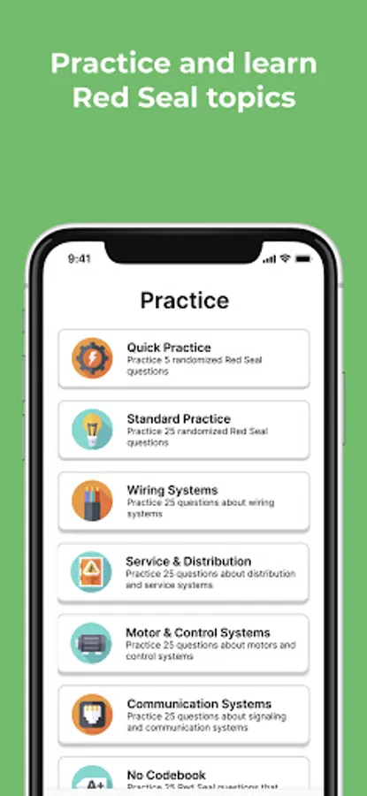 If you're looking to boost your score for your Red Seal Exam as a Construction Electrician, you've come to the right place. On the app, you can practice over 1,250 Red Seal questions with 100+ diagrams through simulating a timed Red Seal exam or practicing specific sections with hints and walkthroughs.