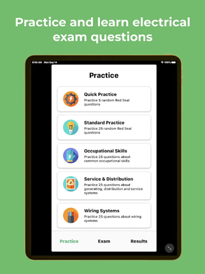 Whether you’re on the subway or on lunch break on the job site, you’ll be able to get it a couple practice questions in. With No Codebook mode, you can practice 25 questions without needing to lug around a heavy NEC codebook all day.