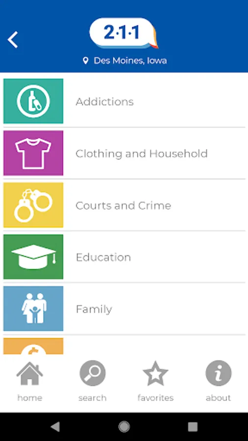 211 Iowa is a free, comprehensive information and referral app linking Iowa residents to health and human service programs, community services, disaster services and governmental programs.