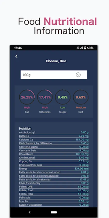 The food search feature allows you to view the nutritional information of any food, including the vitamin and mineral content.