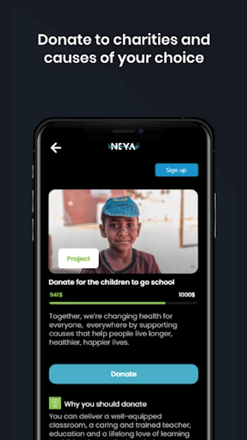 Neya brings all your charity needs into one place. We want to level the playing field and give all charities and causes an equal chance to access donations. Through Neya you can explore charities and causes that tackle different problems in the community and choose those that you want to support most. We don’t want doing good to be a cumbersome process of tirelessly searching for causes that you want to support, figuring out how to support them, and never knowing the extent of your support. Neya wants to make that act of doing good convenient, simple, and interactive. We champion all those in need and give the underserved a chance.