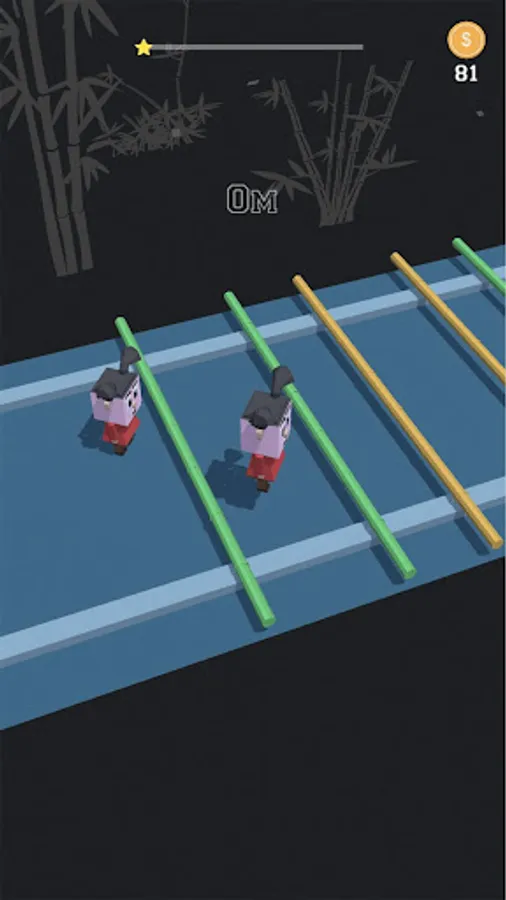 Touch down and hold a little bit to increase jump force then release to jump, avoid jump on the bamboo poles!