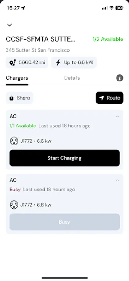 Locate and access all public charging stations with just one app. Bluedot's comprehensive charging station locator helps you find the nearest charging station and plan your charging stops for long road trips. Filter by station type, connector type, and charging speed to find the charging station that meets your needs.
