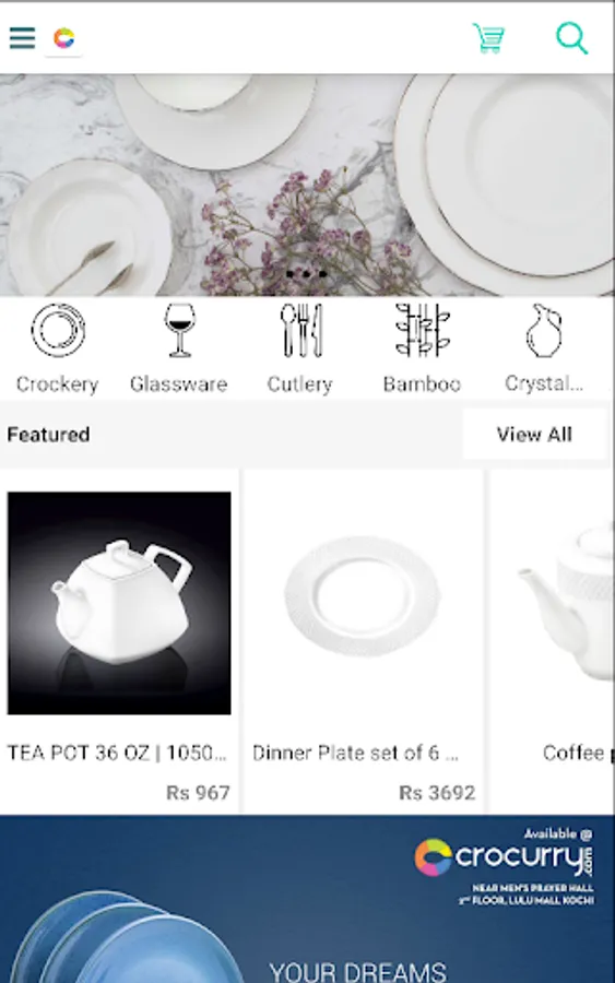 Crocurry offers online shopping of Crockery, Cutlery, Glassware, Crystal Thermal Glassware, Bamboo Ware and Kitchen & Dining Accessories under one roof. Crocurry world class showroom is located in South India's biggest shopping Mall, the Lulu Mall.