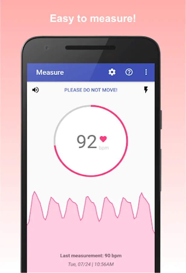 * Our app uses your phone's camera to check bpm. Just gently cover your fingertip on the back camera lens and stay still, then your heart beat will be counted after a few seconds. When you turn off flashlight, please measure in sunlight or bright region.